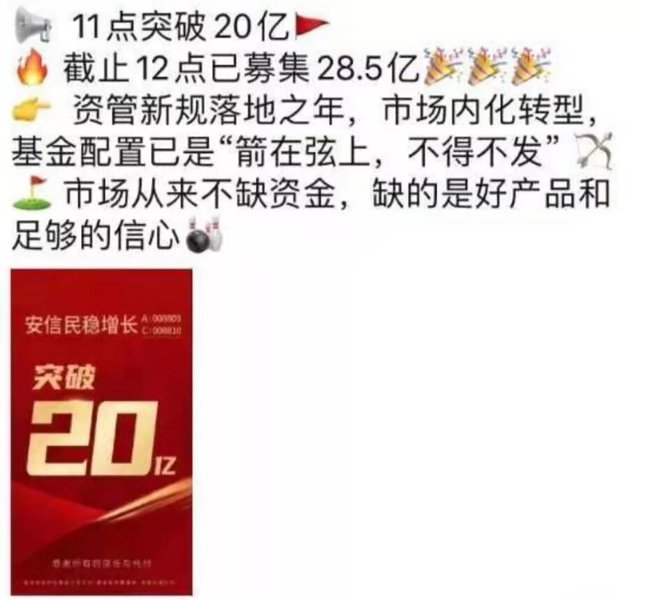 另据渠道人士透露,今日首发的安信民稳增长混合基金,截止12点募集规模已经接近30亿,今日全天募集规模46亿,明天发行规模有望达到50亿元募集规模上限。